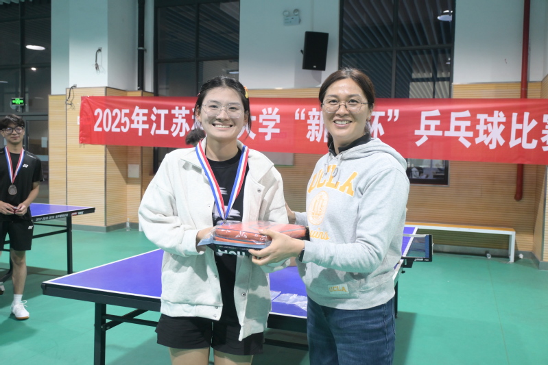 最终,计算机学院王宇翔、环境与化学工程学院田海英分获男、女单打冠军。体育学院陈美琴老师与乒协负责人为获奖选手颁奖,鼓励大家将体育精神延续至学习与生活中。
